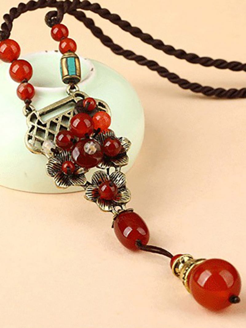 Vintage Κόκκινο Κολιέ Από Κράμα Αχάτη Μακρύ Έθνικ Για Γυναίκες
