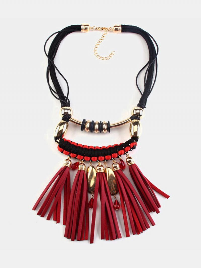 Vintage Κολιέ Με Φούντα Δερμάτινες Χάντρες Με Για Γυναίκες