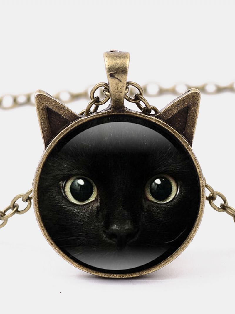 Vintage Μαύρη Γάτα Με Στάμπα Γυναικείο Κολιέ Κρεμαστό Πουλόβερ Σε Αυτιά Γάτας