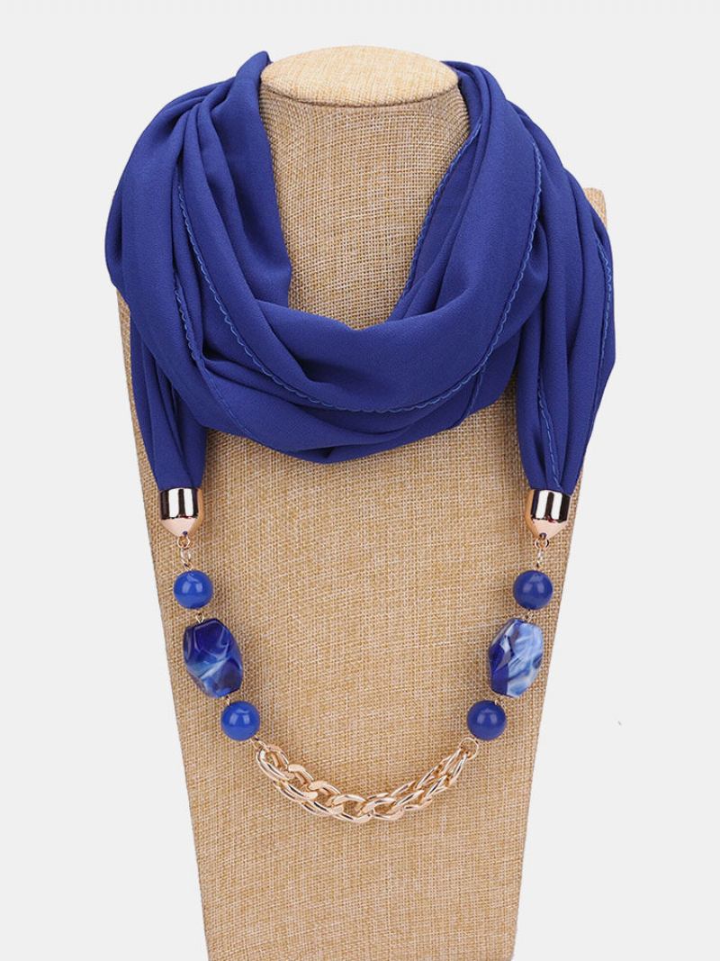 Vintage Μενταγιόν Με Χάντρες Με Αλυσίδα Μονόχρωμο Σιφόν Ρητίνη Λαιμού Αντιηλιακό Κολιέ Μαντίλι