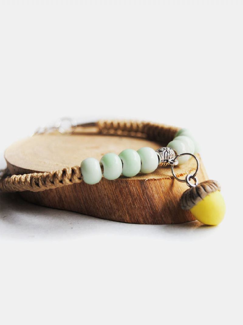 Vintage Μενταγιόν Σε Σχήμα Πεύκου Κεραμικό Με Χάντρες Υφαντό Χειροποίητο Βραχιόλι Από Κερί Σχοινί