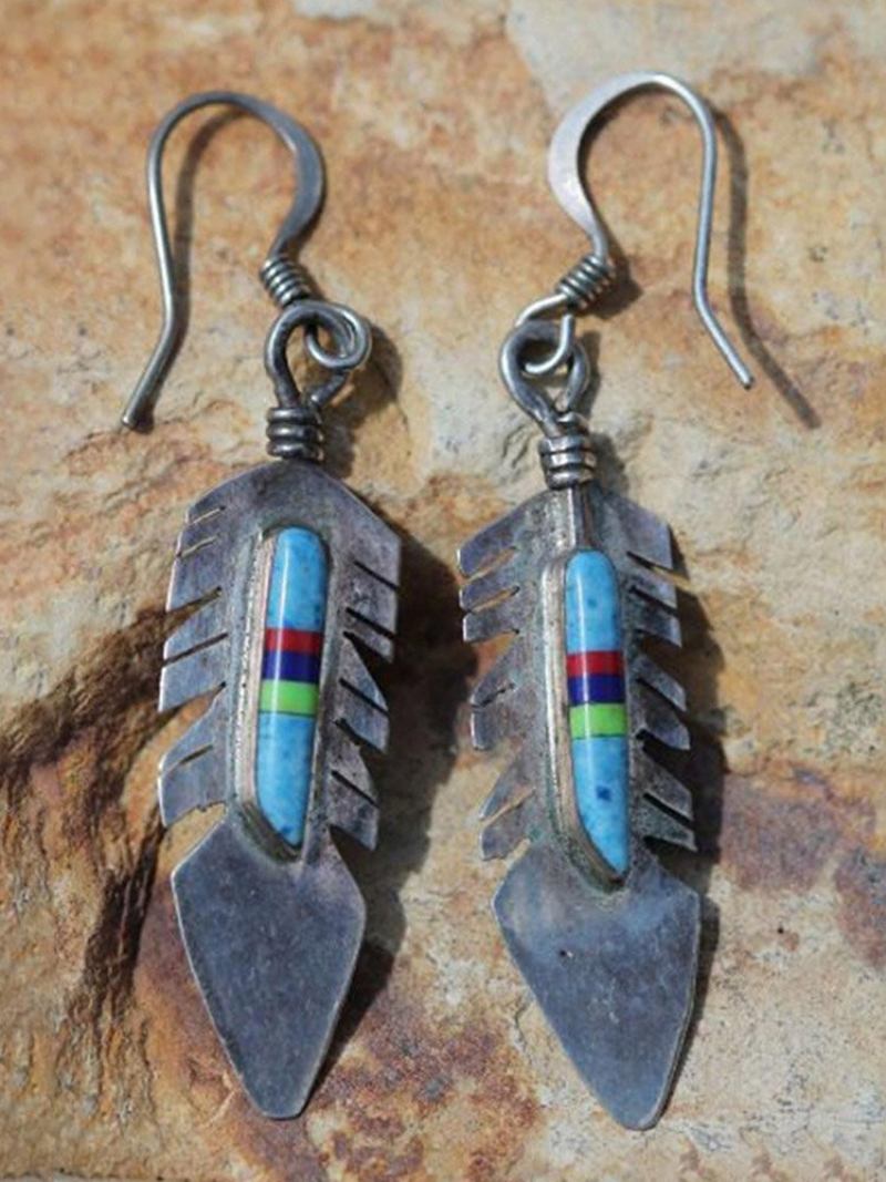 Vintage Μεταλλικά Γεωμετρικά Σκουλαρίκια Με Πούπουλα