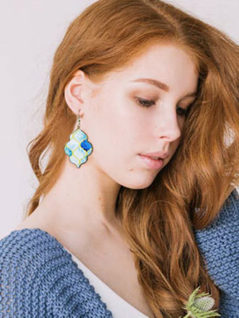 Vintage Μπαρόκ Κράμα Pu Δέρμα Γεωμετρικού Σχήματος Argyle Floral Σκουλαρίκια Εκτύπωσης