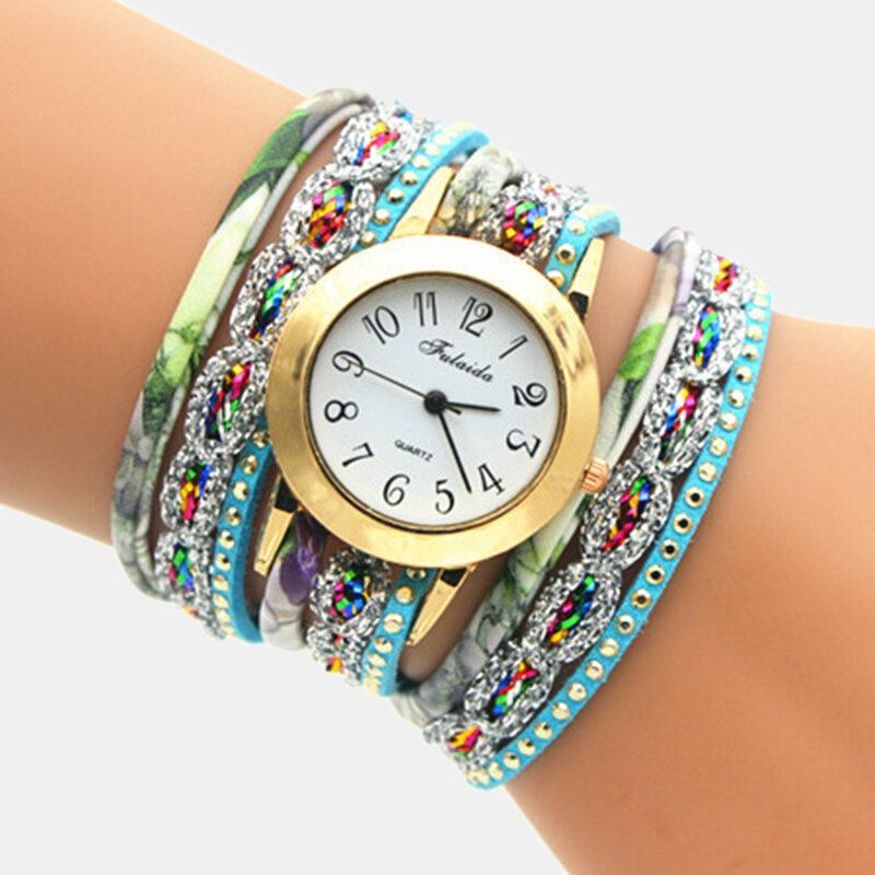 Vintage Πολύχρωμο Ρολόι Εκτύπωσης Πολλαπλών Στρώσεων Μεταλλικό Χαλαζία Από Στρας Pu