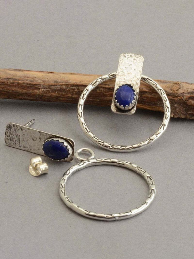 Vintage Σκουλαρίκια Διπλής Όψης Συνδυαστικά Χρήσης Σφυρί Σακάκι Λάπις Αυτί