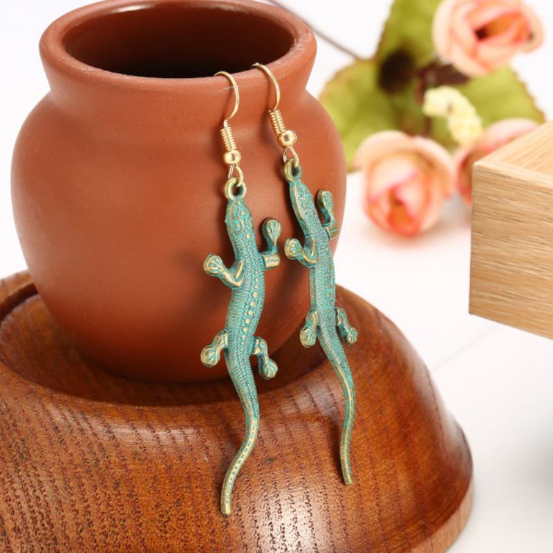 Vintage Σκουλαρίκια Μακριά Από Κράμα Μπλε Gecko