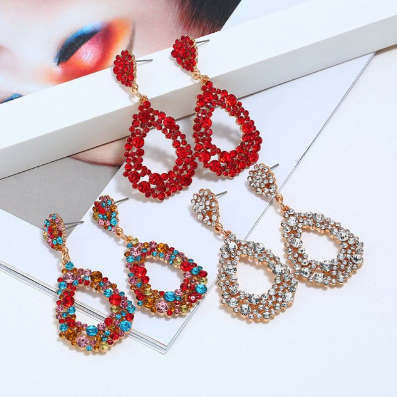 Vintage Σκουλαρίκια Σταγόνα Νερού Exaggerated Γεωμετρικά Κρεμαστά Από Στρας Κομψά Κοσμήματα