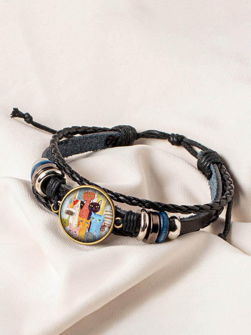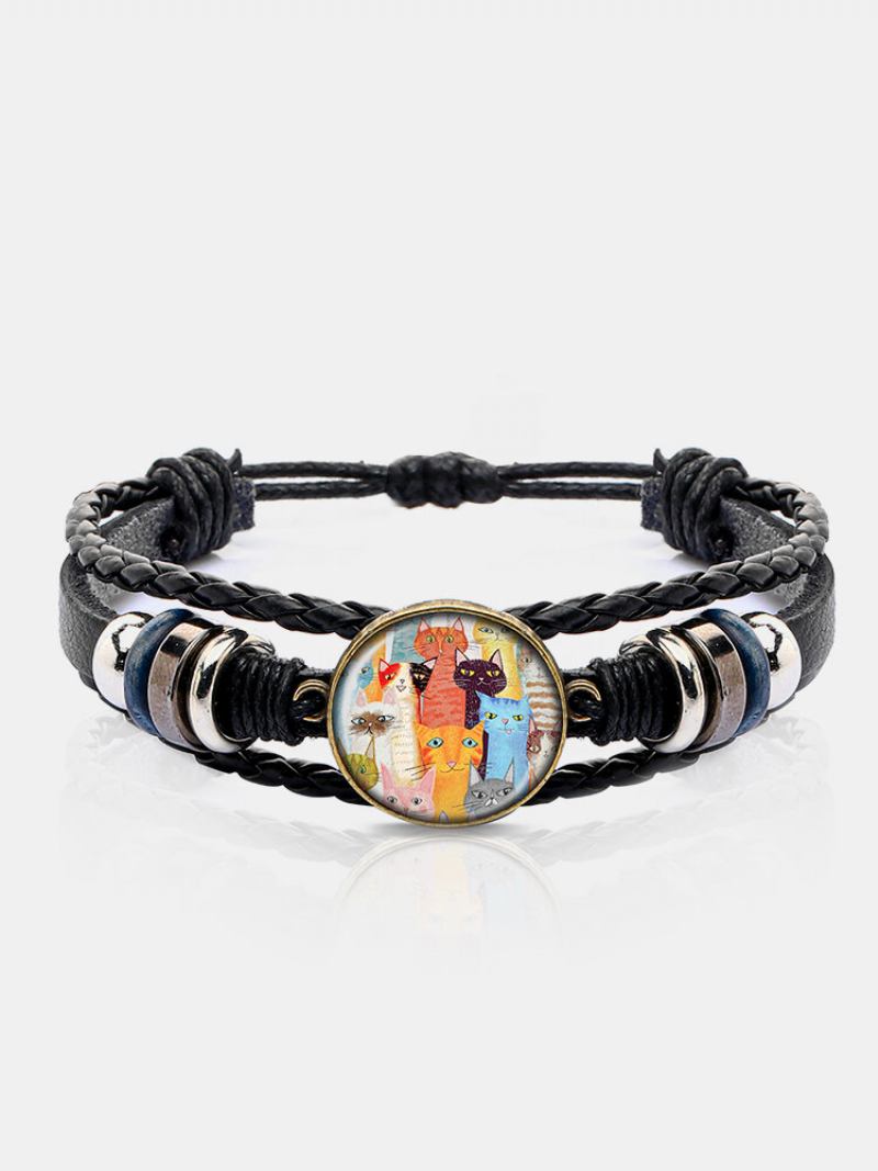 Vintage Στρογγυλό Γυαλί Ετεροχρωματικό Χειροποίητο Βραχιόλι Γάτας