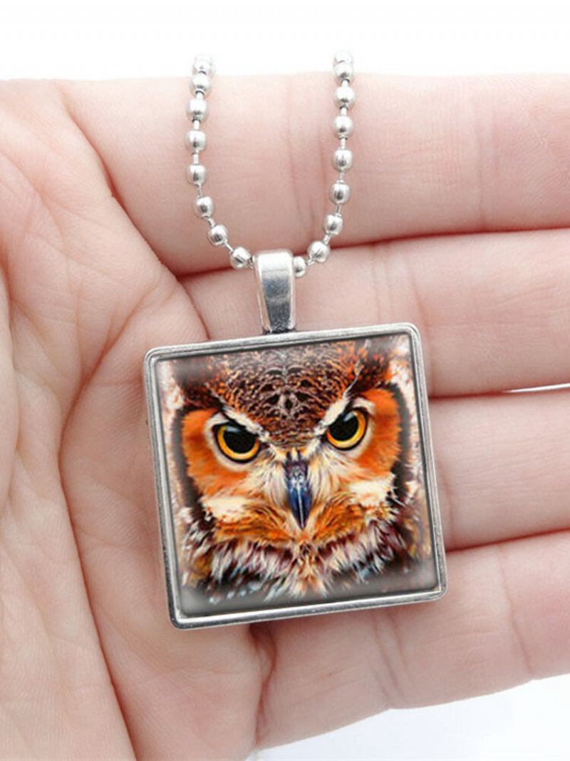 Vintage Τετράγωνο Γυαλί Με Στάμπα Γυναικείο Κολιέ Κουκουβάγια Κρεμαστό Πουλόβερ Αλυσίδα Κοσμήματα Δώρο