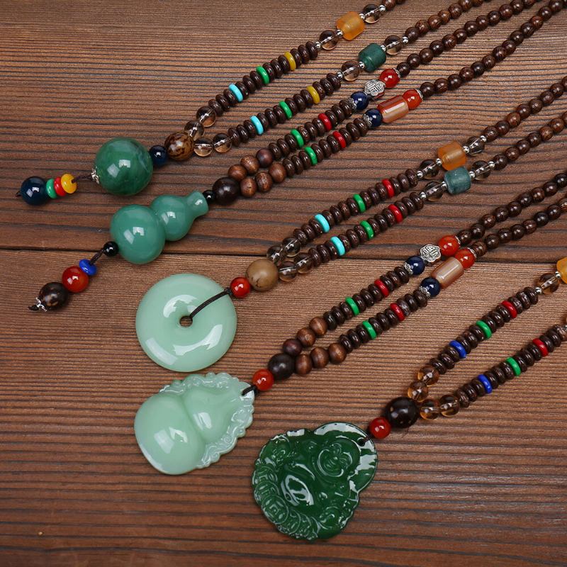 Vintage Χειροποίητες Χάντρες Βούδα Μακρύ Κολιέ Ethnic Ακανόνιστο Κρυστάλλινο Κρεμαστό Πουλόβερ Αλυσίδα