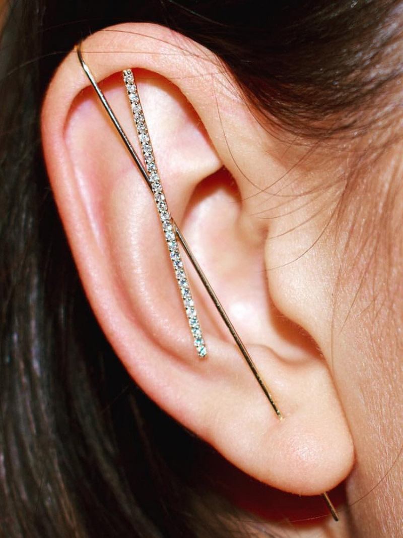 Χάλκινα Ένθετα Με Ζιργκόν Επιχρυσωμένα Σκουλαρίκια Τρυπήματος Γύρω Από Γυναικείο Κλιπ Αυτιού