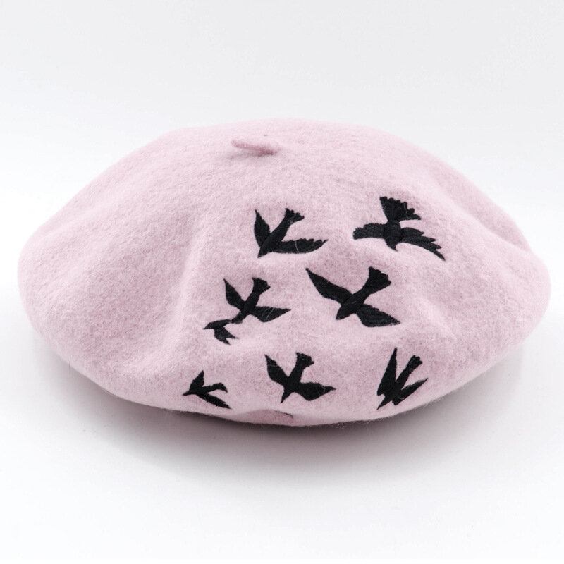 Χειμερινό Μαλλί Ζεστά Κεντημένα Χελιδόνια Καπέλα Μπερέ Με Μοτίβο Για Γυναίκες Casual Travel Πλεκτό Καπέλο Ζωγράφου