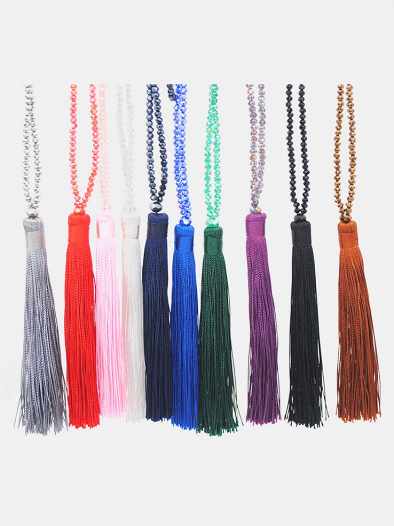 Χειροποίητο Κολιέ Με Χάντρες 10 Χρωμάτων Μακριές Κρυστάλλινες Αλυσίδα Πουλόβερ Με Φούντα