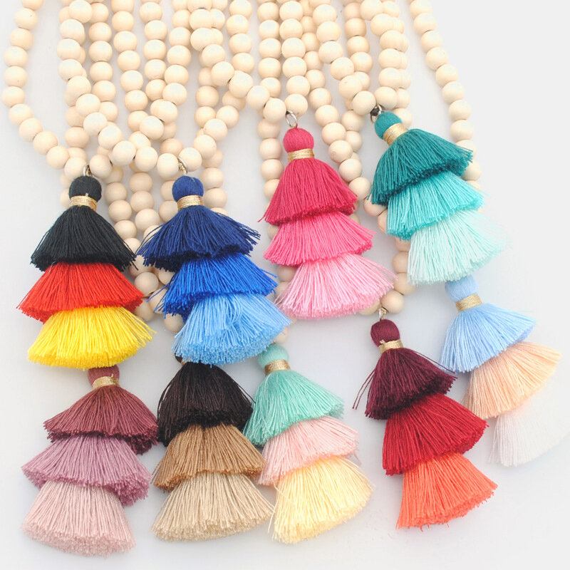 Χρώμα Bohemian Hit Τριών Στρώσεων Στερεοσκοπικό Κολιέ Με Φούντα Χειροποίητο Ξύλινο Μακρυ Αλυσίδα Πουλόβερ