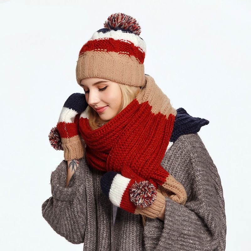 Ζεστό Γυναικείο Κασκόλ 3 Τμχ Γάντια Καπάκι Εξαιρετικά Μαλακό Ακρυλικό Πλεκτό Beanies Snood Προσώπου Λαιμός Χεριών